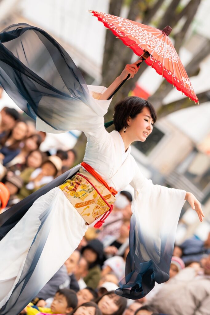 • 和傘や扇子を使用:美しい所作と道具の変化が視覚的に楽しめる