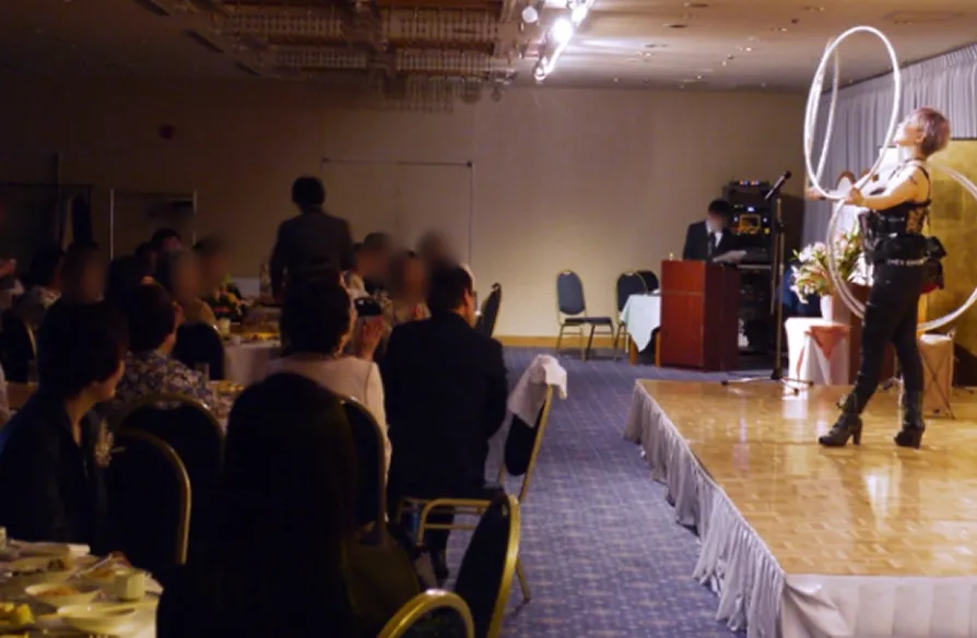 企業様宴席で最も多いのは、ホテルでの宴会場でのステージですが、貸切のレストラン、会議室、会社の食堂など。様々なスペースでショーをすることが可能です。